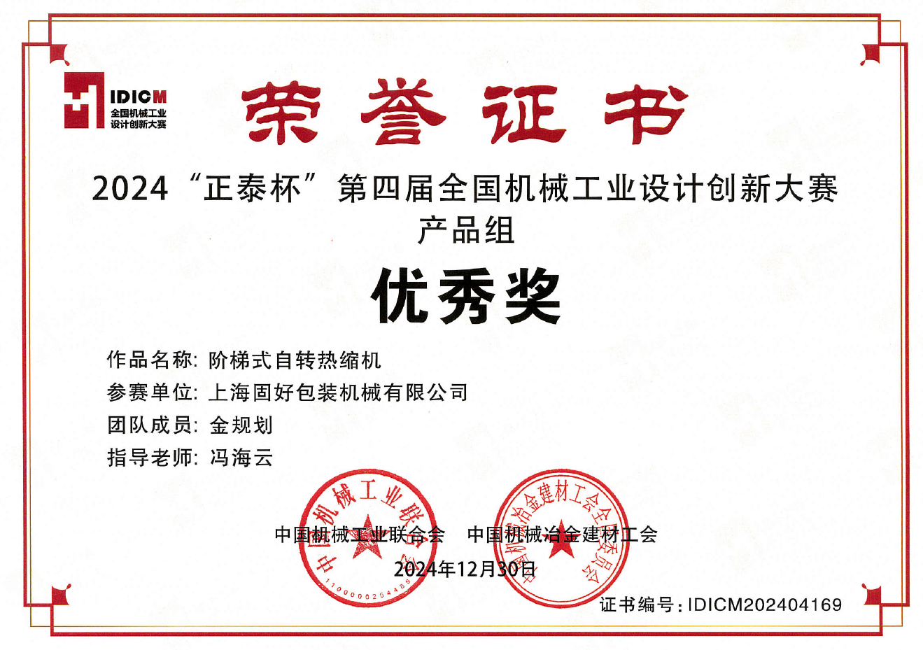 KUKO“階梯式自轉(zhuǎn)熱縮機(jī)”榮獲2024第四屆全國(guó)機(jī)械工業(yè)設(shè)計(jì)創(chuàng)新大賽優(yōu)秀獎(jiǎng)